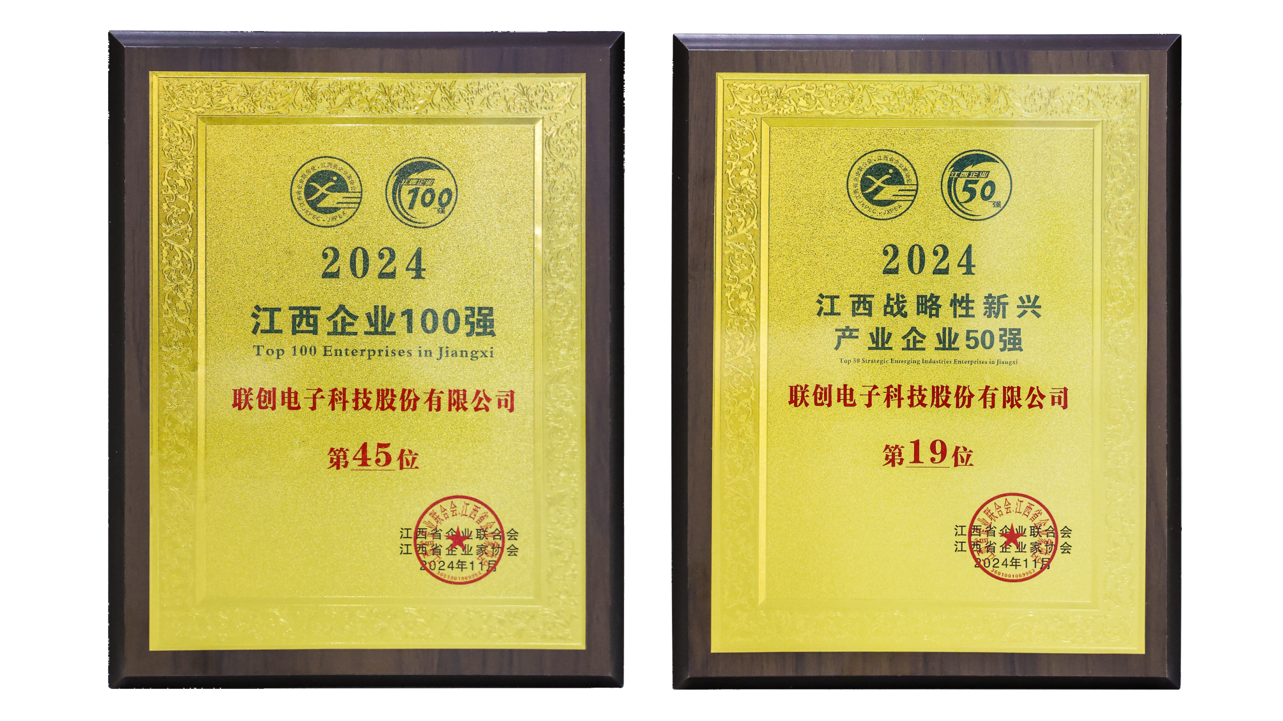 11月20日,江西省企业联合会、江西省企业家协会发布“2024江西企业100强”“2024江西战略性新兴产业企业50强”榜单。华体会官方端网站登录入口凭借稳健的经营业绩和较强的综合实力,荣登2024江西企业100强第45位、战略性新兴产业企业50强第19位。这一成绩的取得,充分反映了联创电子在电子信息、战略性新兴产业领域的深厚积淀和强劲发展势头。